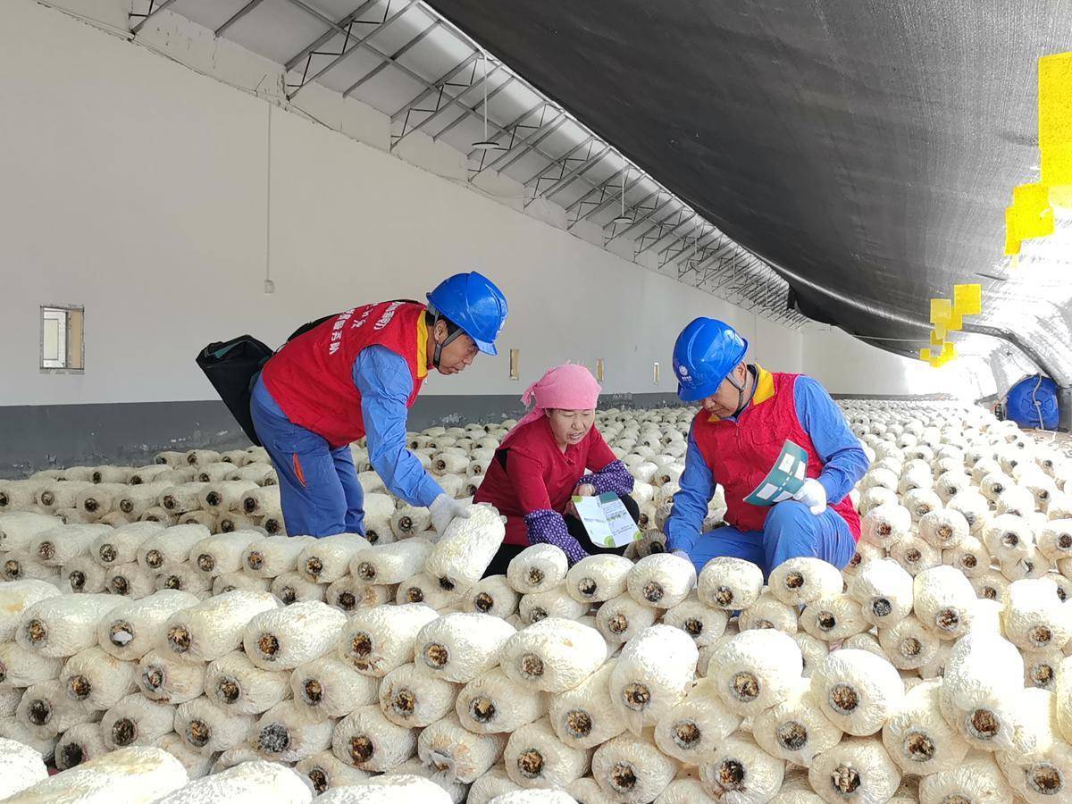 国网海东供电公司民和县供电公司党员服务队员正在了解食用菌长势。赵梅芳 摄